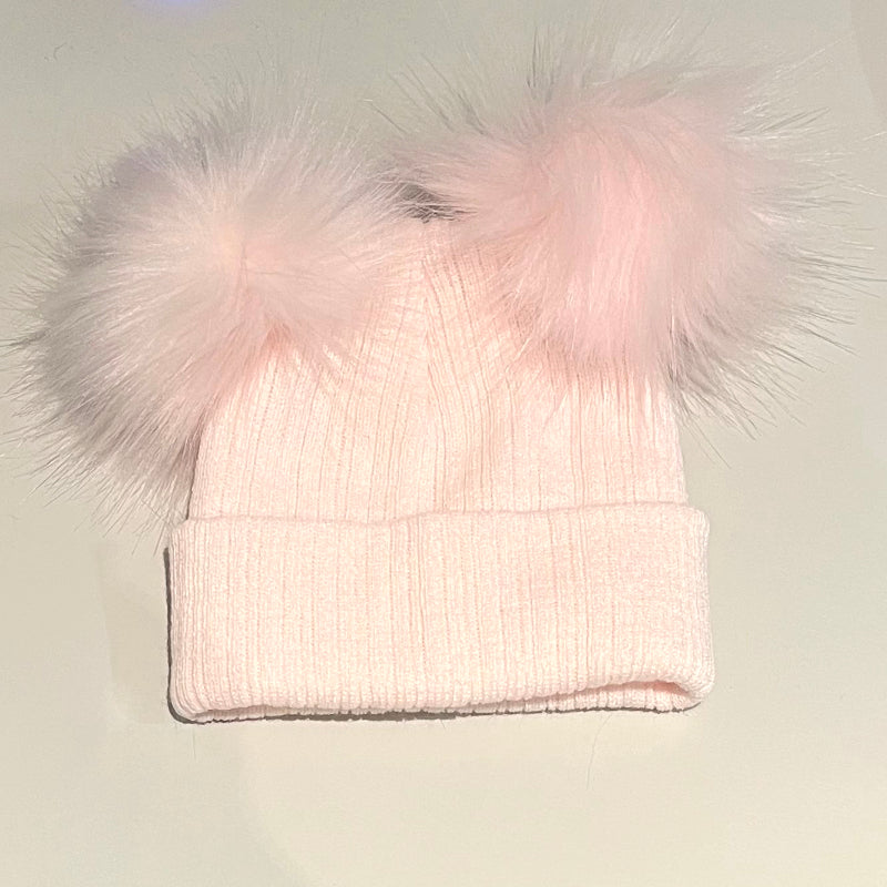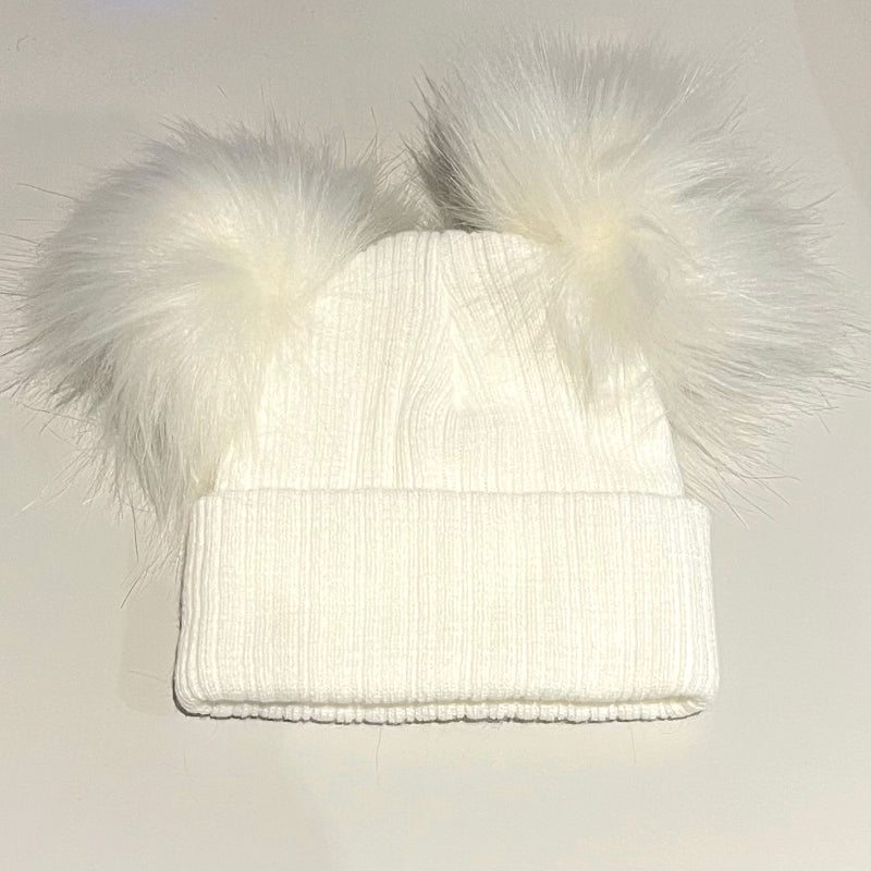 Hat with two pom poms - larger size to fit approx 6 -18 months