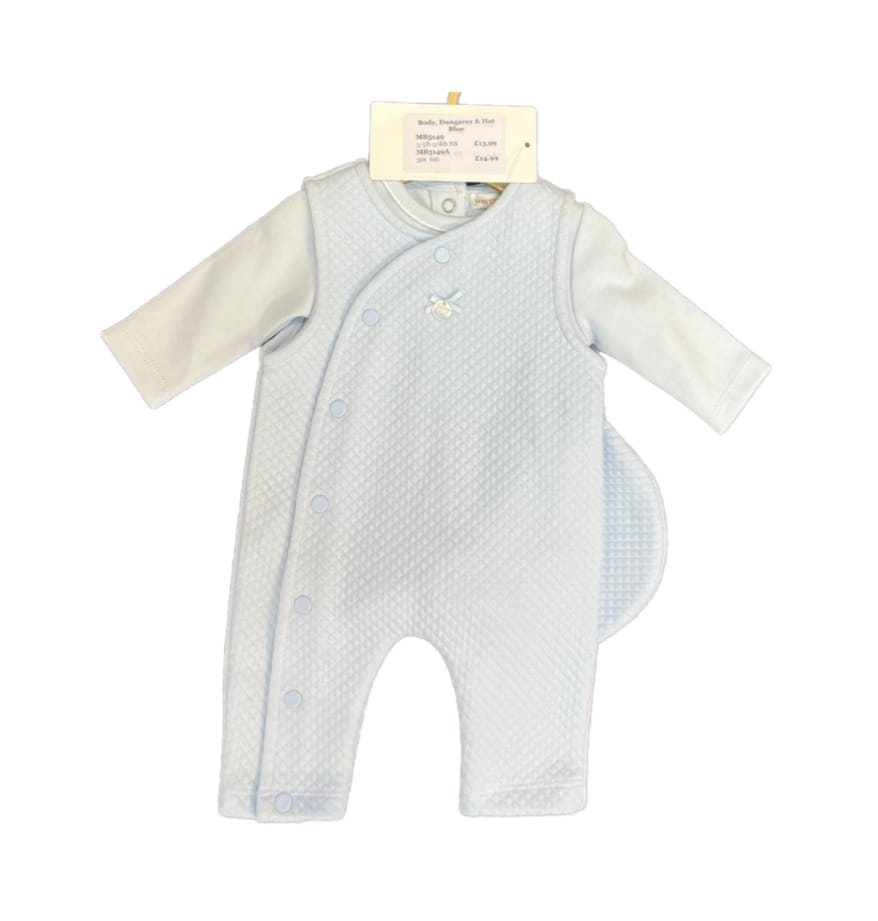 - Long sleeved top, dungarees and matching hat